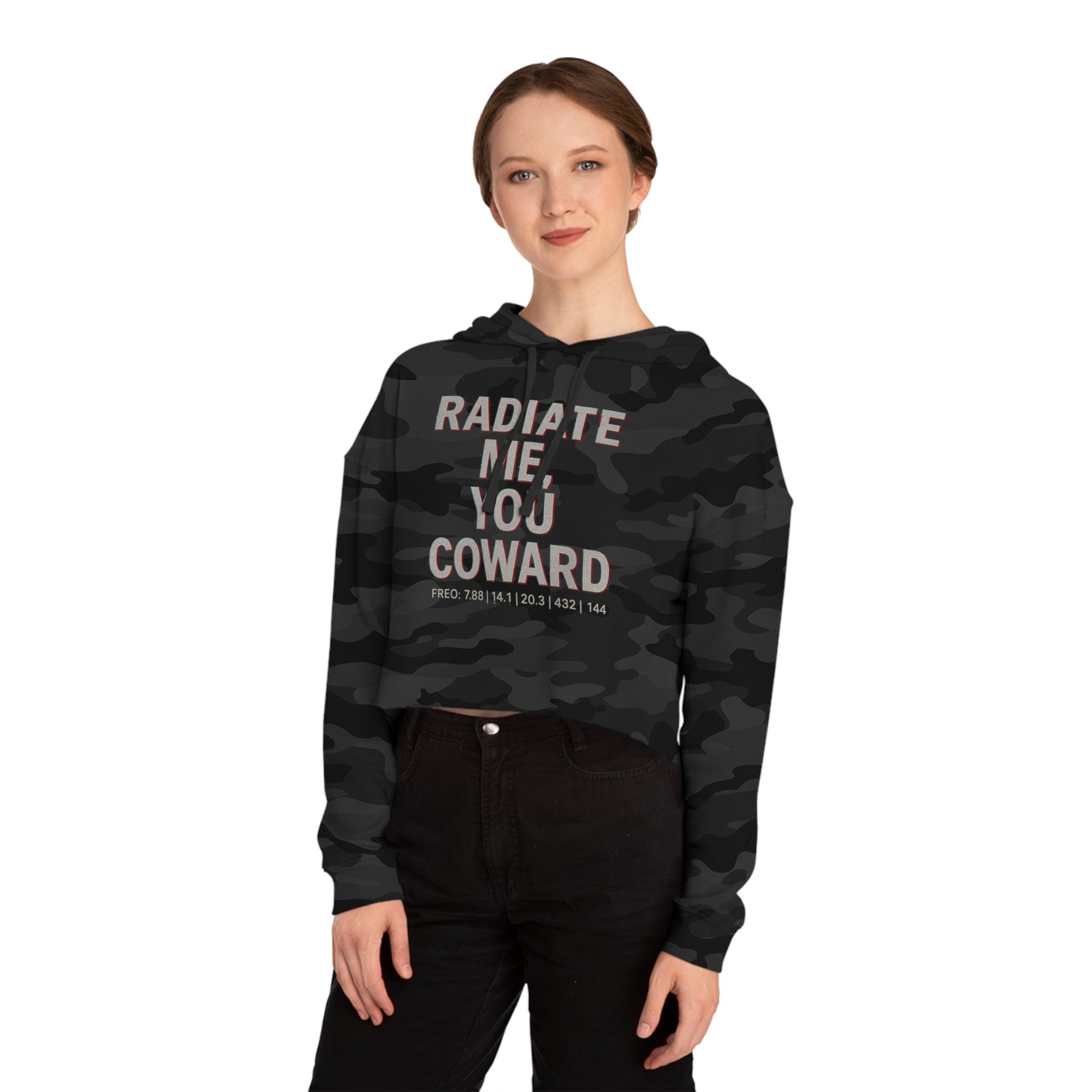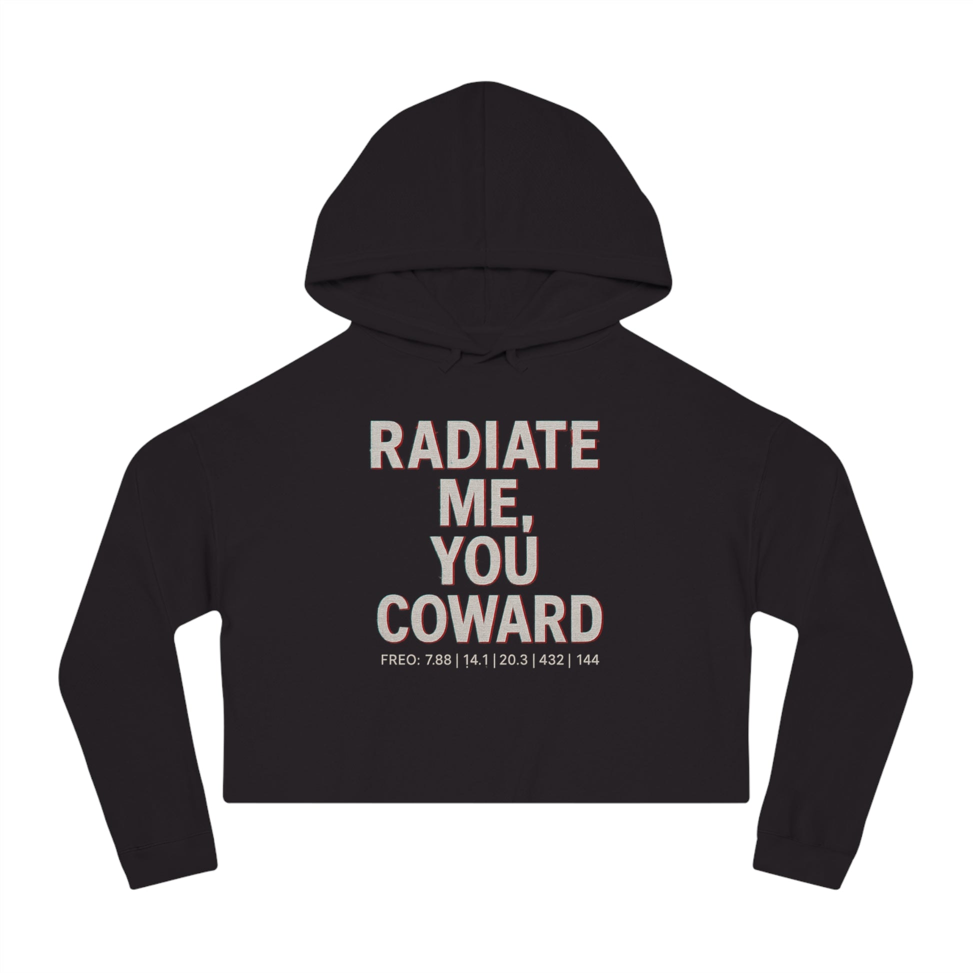 Take the Radiate Me mantra with you everywhere. This cropped hoodie is a powerful combo of cozy and badass, featuring Radiate Me in bold, glitchy text.